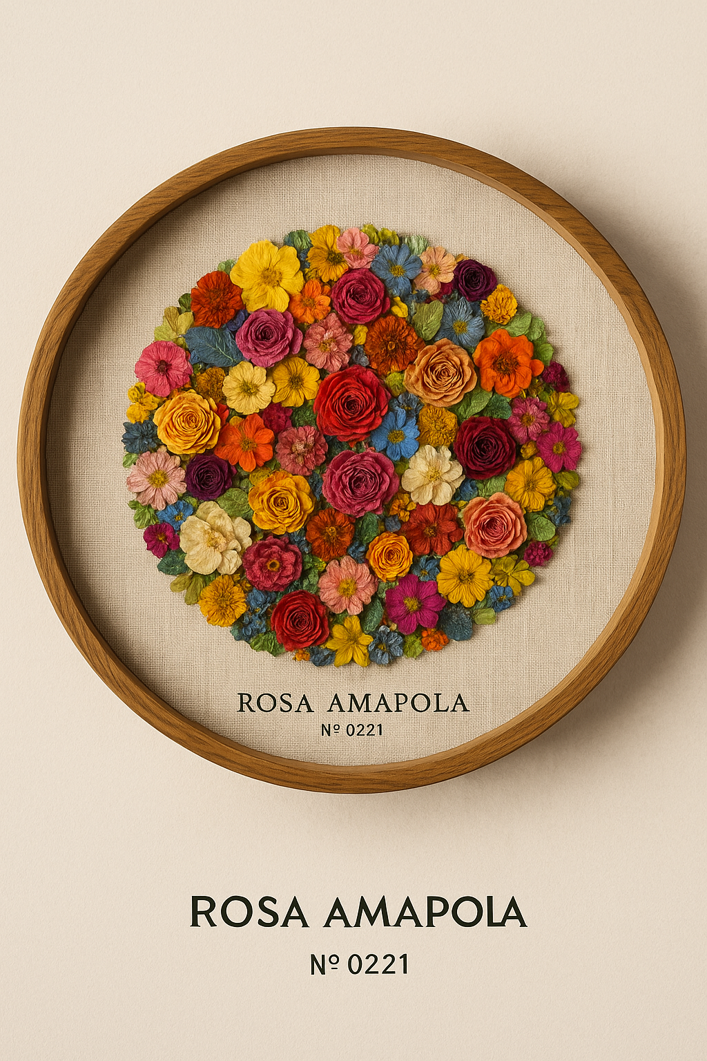 Rosa Amapola crea obras únicas de arte floral contemporáneo, donde cada flor preservada se transforma en una expresión de eternidad.